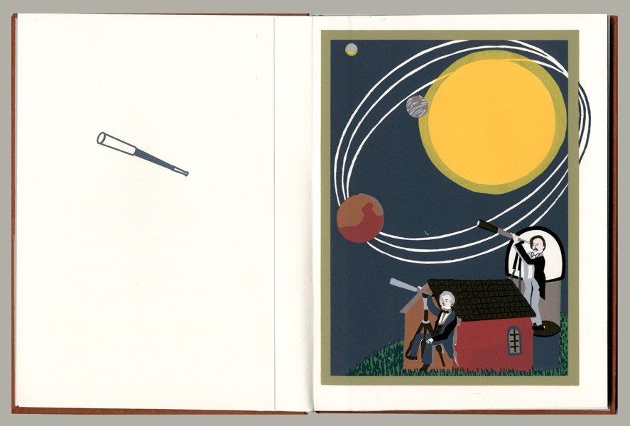 This book features 10 images interpreting occasions when truth took a circuitous route. From Einstein’s Cosmological Constant, to Alchemy, to Geocentricism, and seven others, the screen prints are inspired by medieval illuminations and Mughal miniatures to encapsulate moments from the history of science using various narrative strategies. The book inverts the relationship between word and image, with written descriptions of each scientific theory accessible behind a gate-fold, enabling the images to take precedence. Silkscreen and digitally printed, bound in hard covers. – description from Women’s Studio Workshop